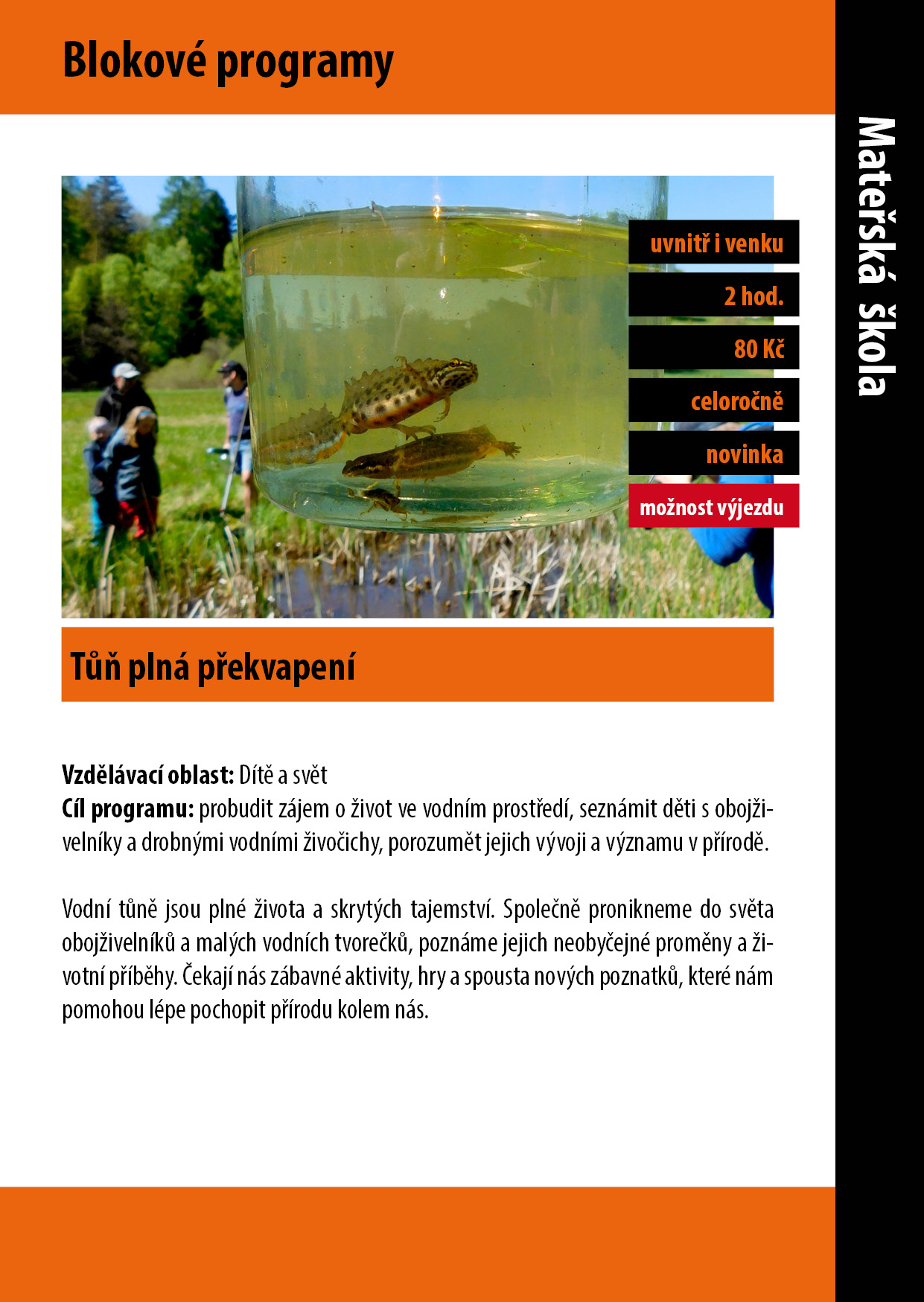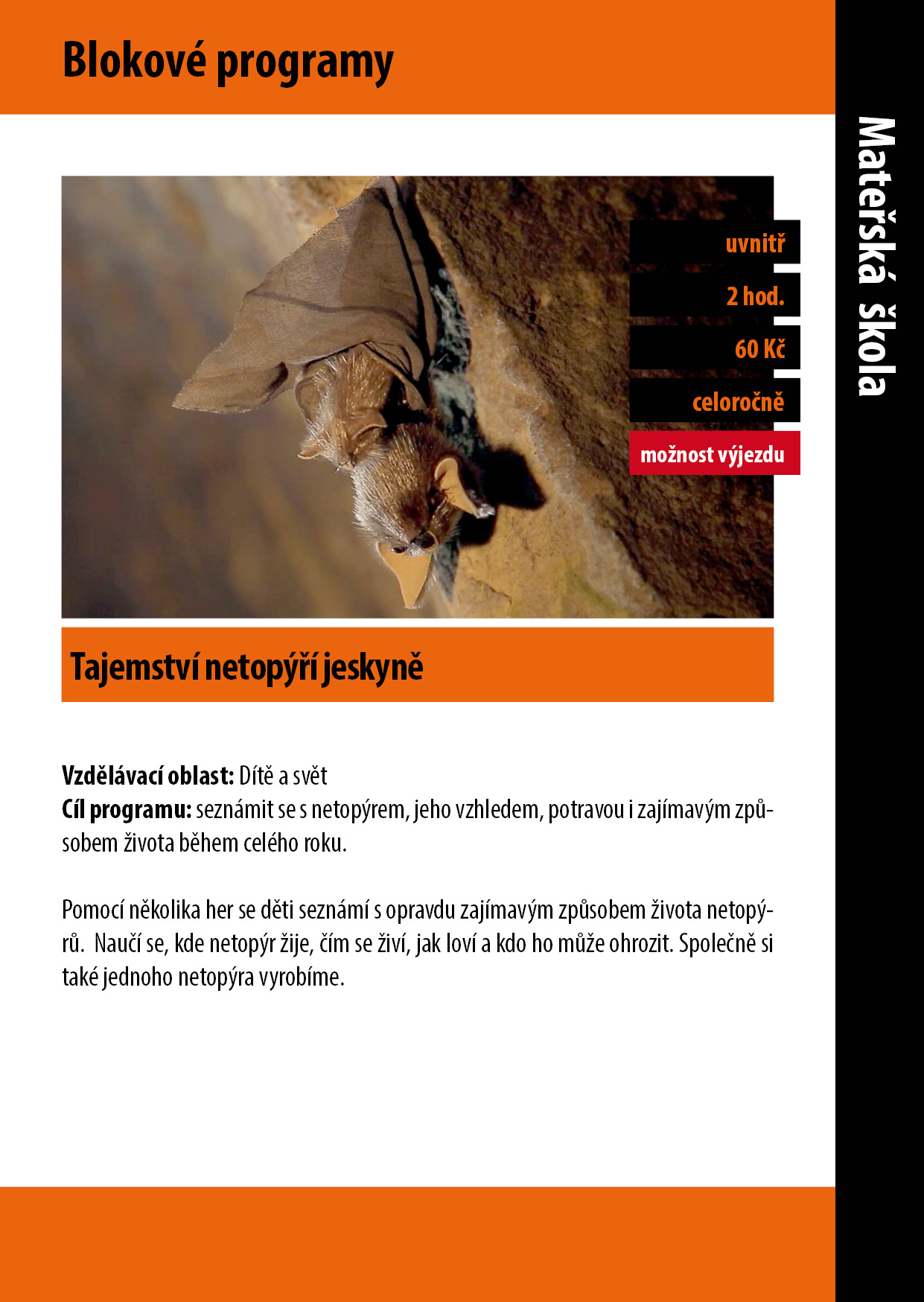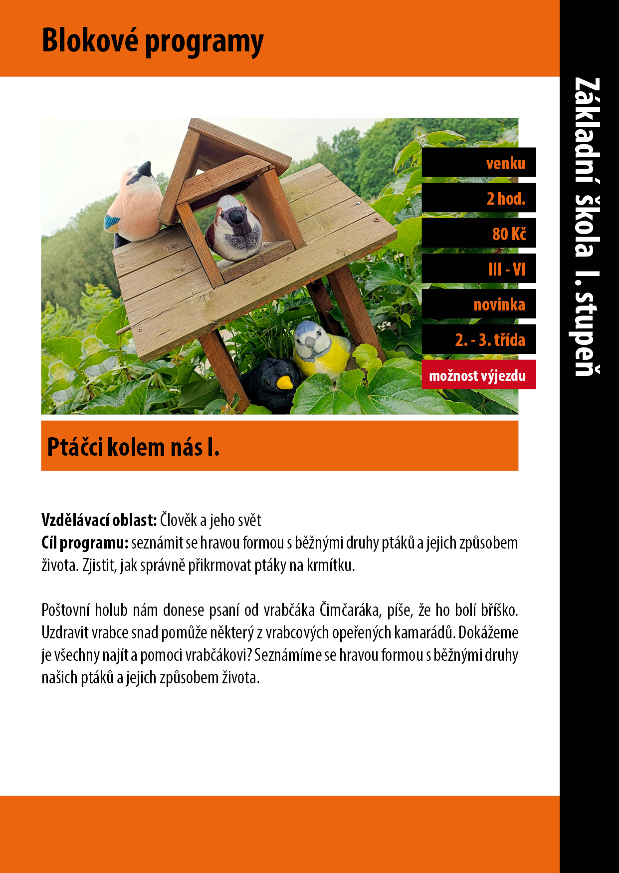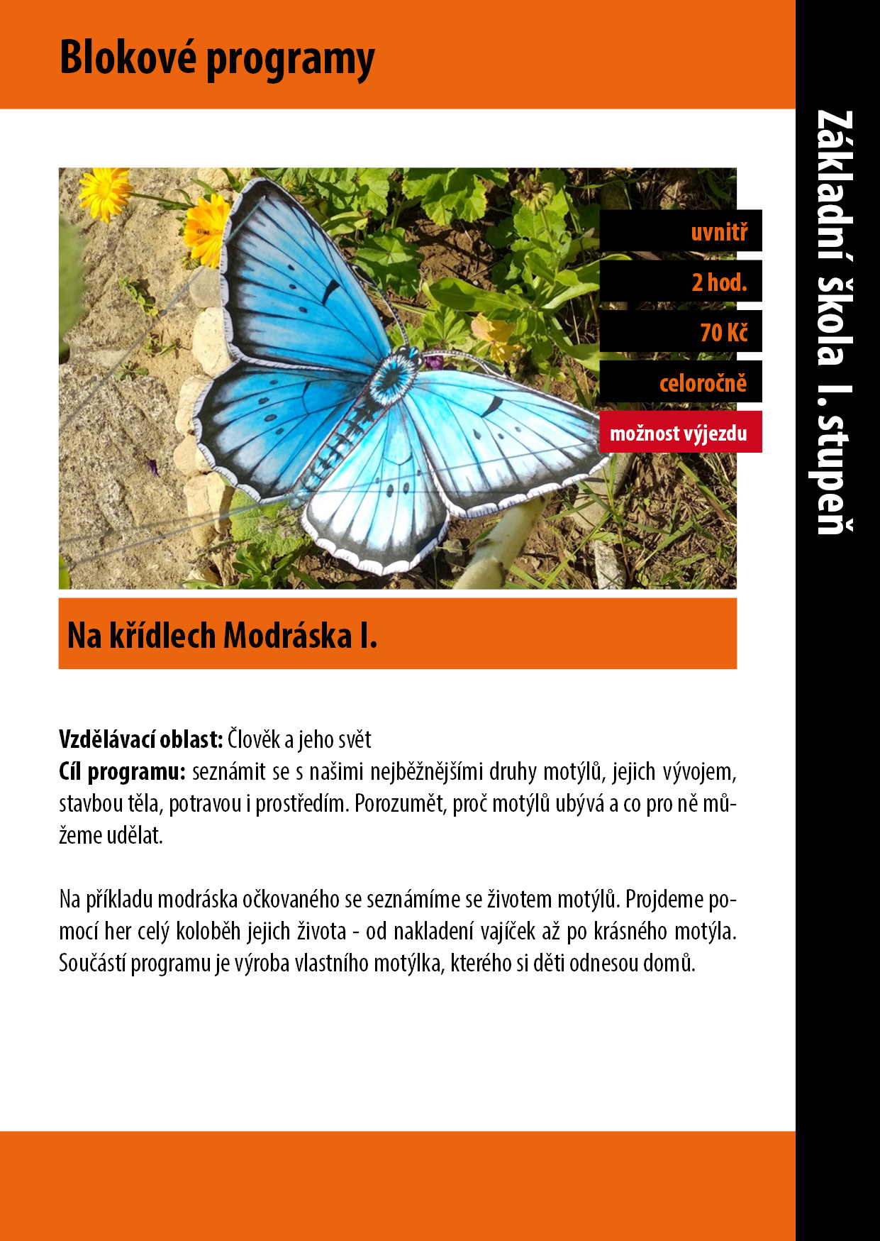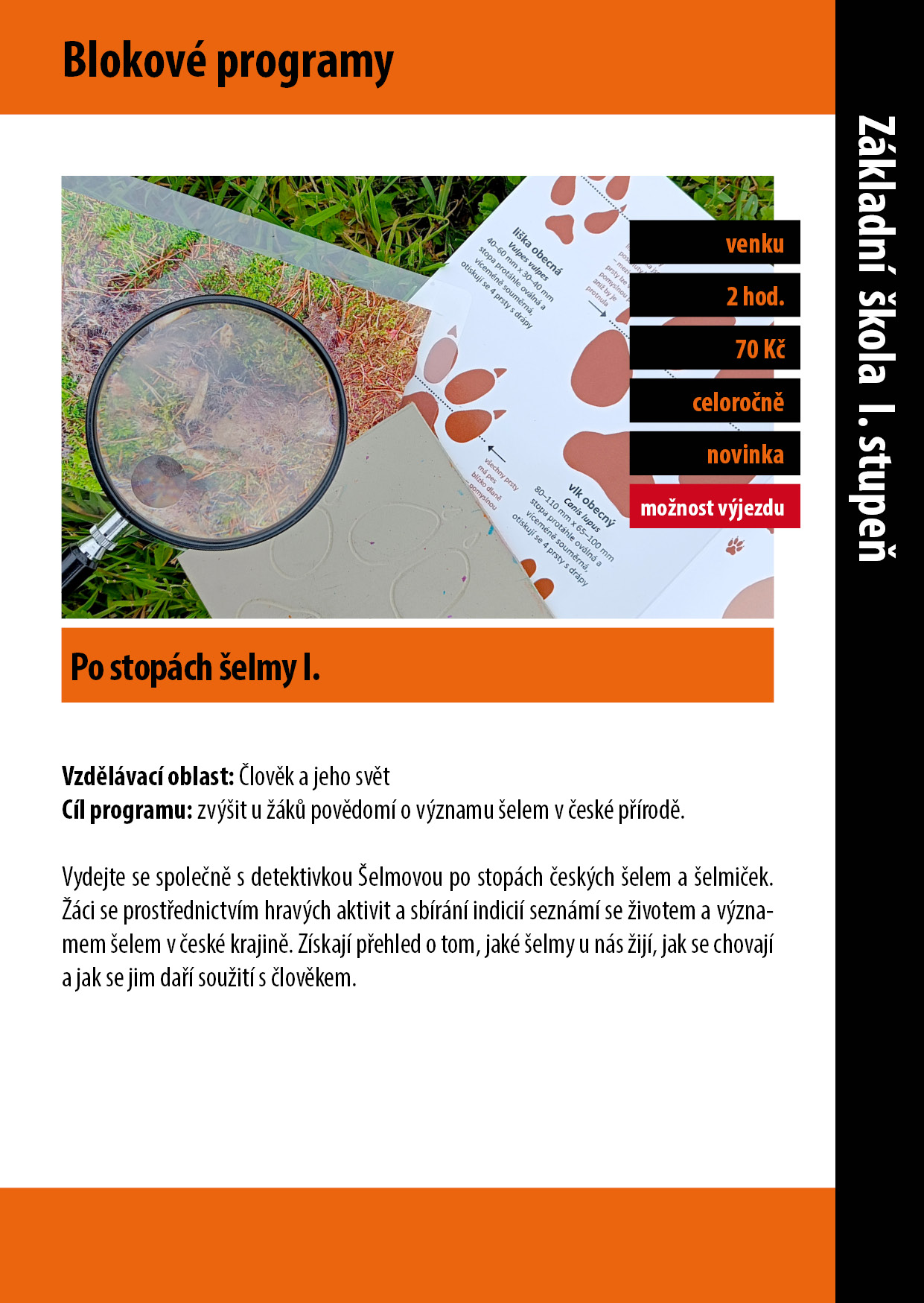 | uvnitř i venku | 2 hod. | 70 Kč | IX - X a IV - VI | 6. - 9. třída | |