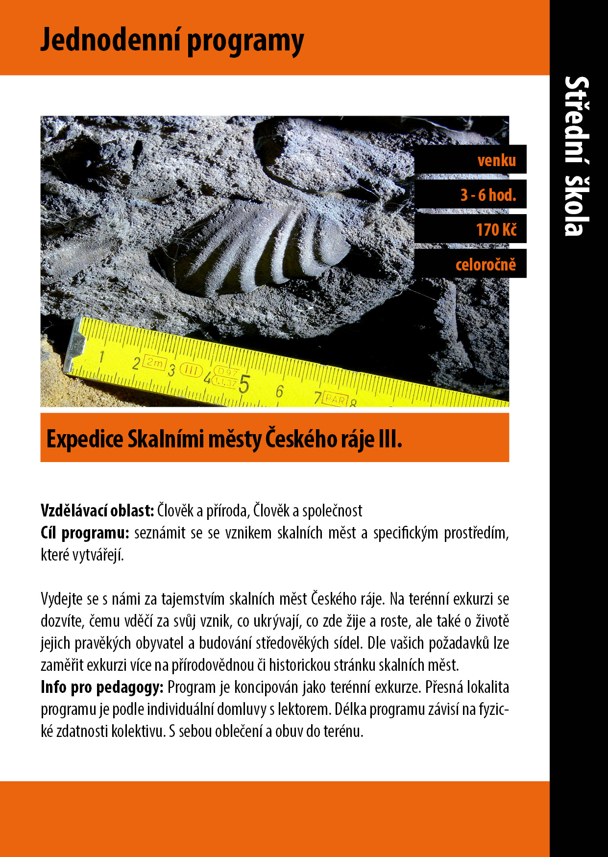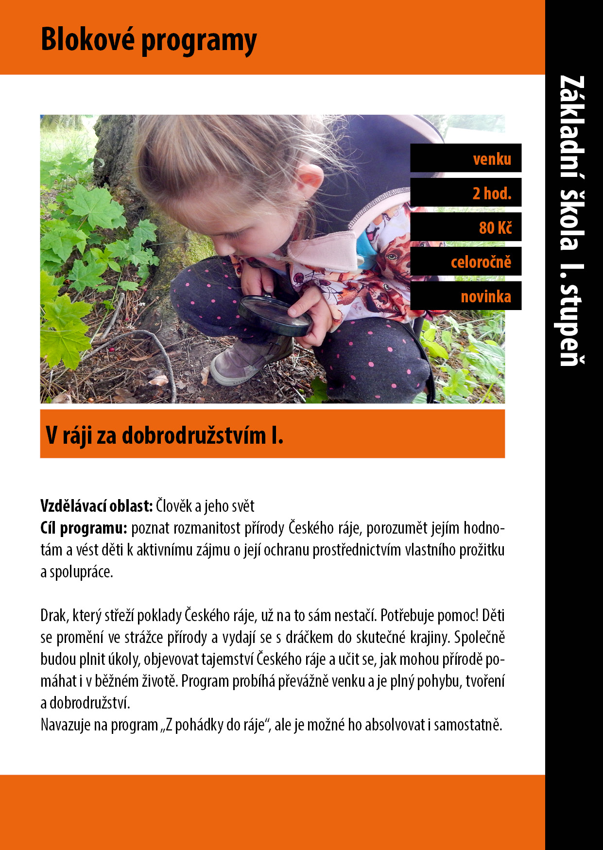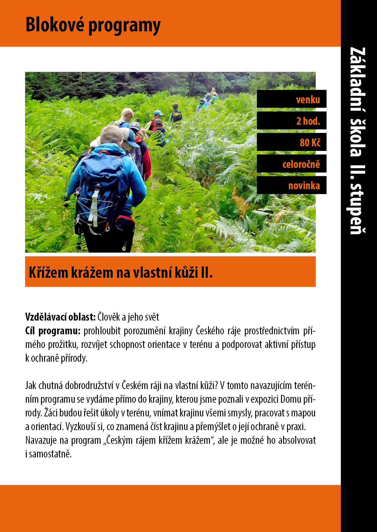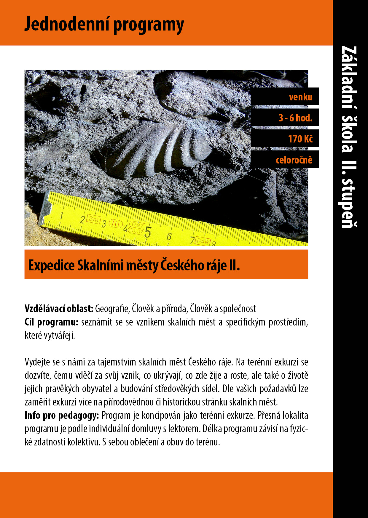| Českým rájem křížem krážem I. | uvnitř | 2 hod. | 80 Kč | celoročně | 4. - 5. třída |
